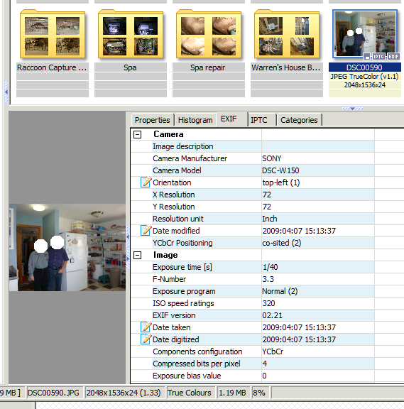 Now I use IfranView to add some text to the IPTC caption field, showing timestamps seen by IfranView. The template is: exif date=$E306 org=$E36867|file date=$T sys date=$U|IPTC rel= $I30 $I35 create=$I55 $I60.