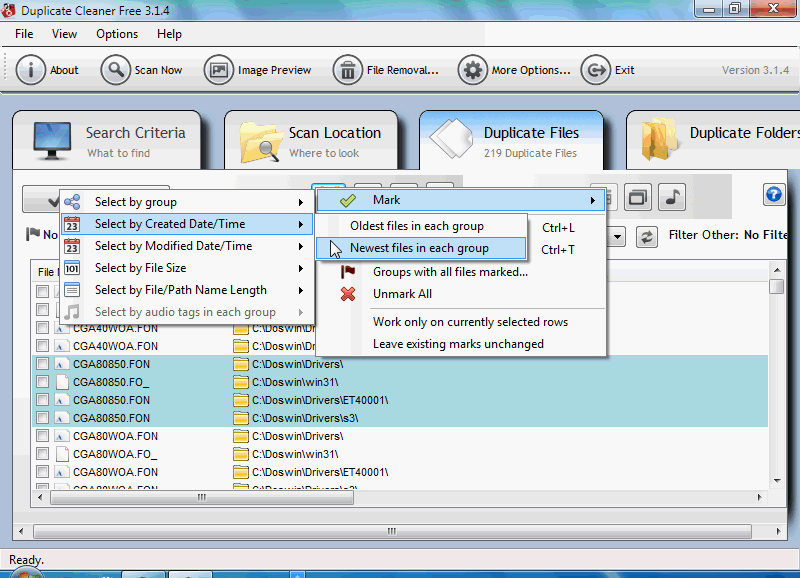 Once again I am attempting to explain this predicament..It should be read along with the previous posts in this thread.Let us say after the search and duplicates are identified , the first marking of duplicates are done based on Files by creation time and mark by recently created. . Next as a test case take noet of the folder in which a file is marked. Try to exclude all of this folder. Now the marked files should come down. Instead it gets added up and , the folder which was supposed to be excluded still is ticked in the file list.