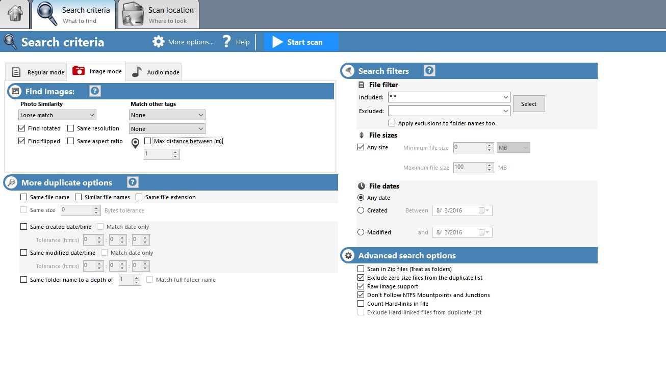 Hi, I purchased this software because it has great options for moving or deleting duplicates. However, In picture mode I am getting few if any pictures back. Previously I was using a free program called "AwesomeDuplicatePhotoFinder". The Free Program consistently finds many more duplicate pictures . Att are my settings.