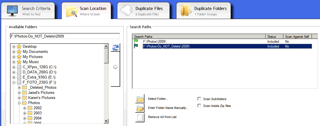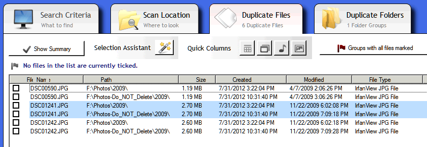 OK, here's the audit trail. This runs Duplicate Cleaner 3.0.6 to locate F:\Photos\2009\DSC00590.jpg and its duplicate F:\Photos-Do_NOT_Delete\2009\DSC00590.jpg.